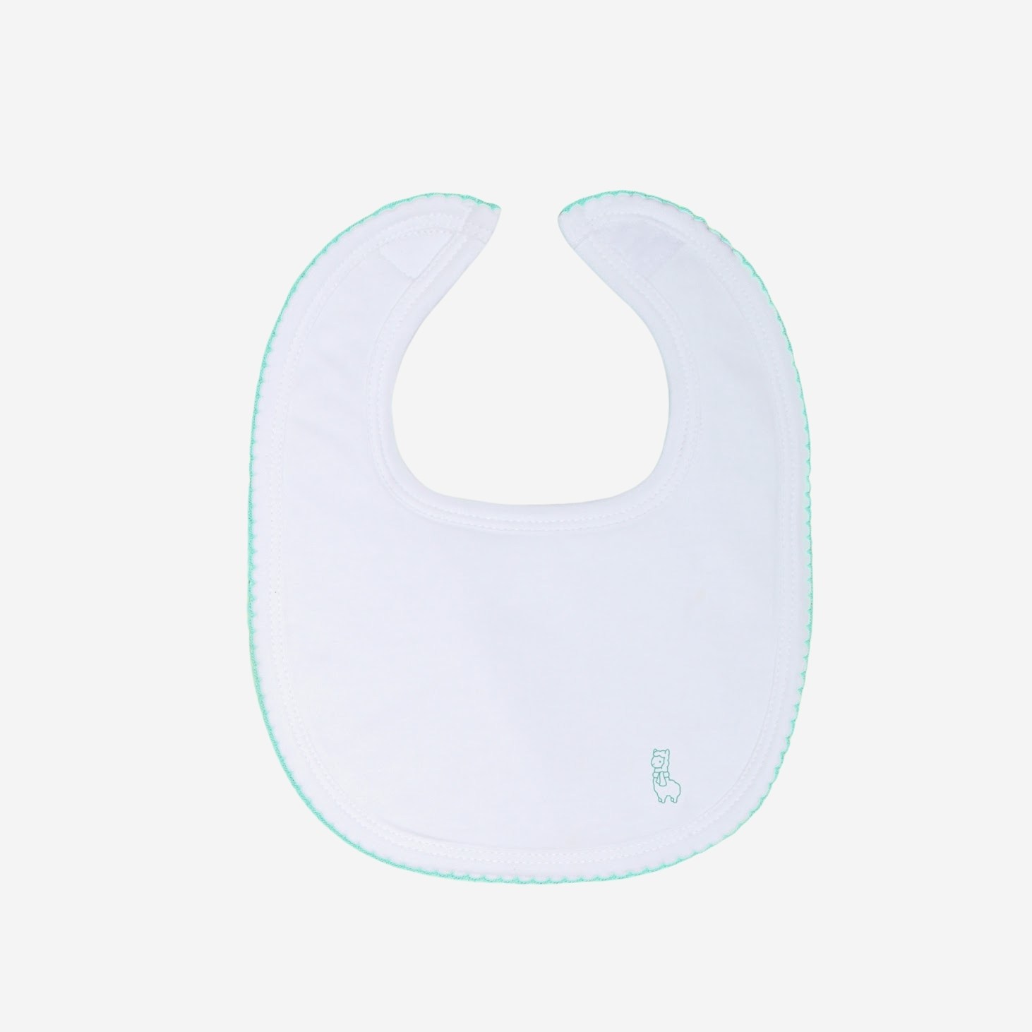 Lätzchen mit Klettverschluss aus peruanischer Pima-Baumwolle, weich und praktisch für den Alltag mit dem Baby. Doppelseitig: Pima-Baumwolle auf der einen Seite und Frottee auf der anderen für eine bessere Aufnahme. Erhältlich mit der Llamita in Grün, Blau, Rosa und Gelb.