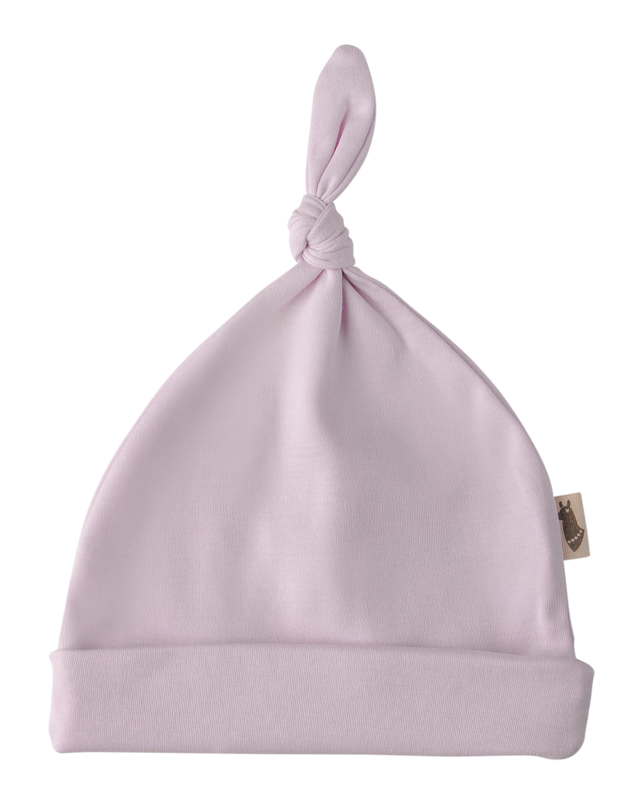 Der Knoten am Oberteil verleiht der Mütze einen liebevollen Akzent und sorgt gleichzeitig für eine flexible Passform ohne Druckgefühl. Der umgeschlagene Rand unterstützt einen sicheren Sitz und ein angenehmes Tragegefühl.