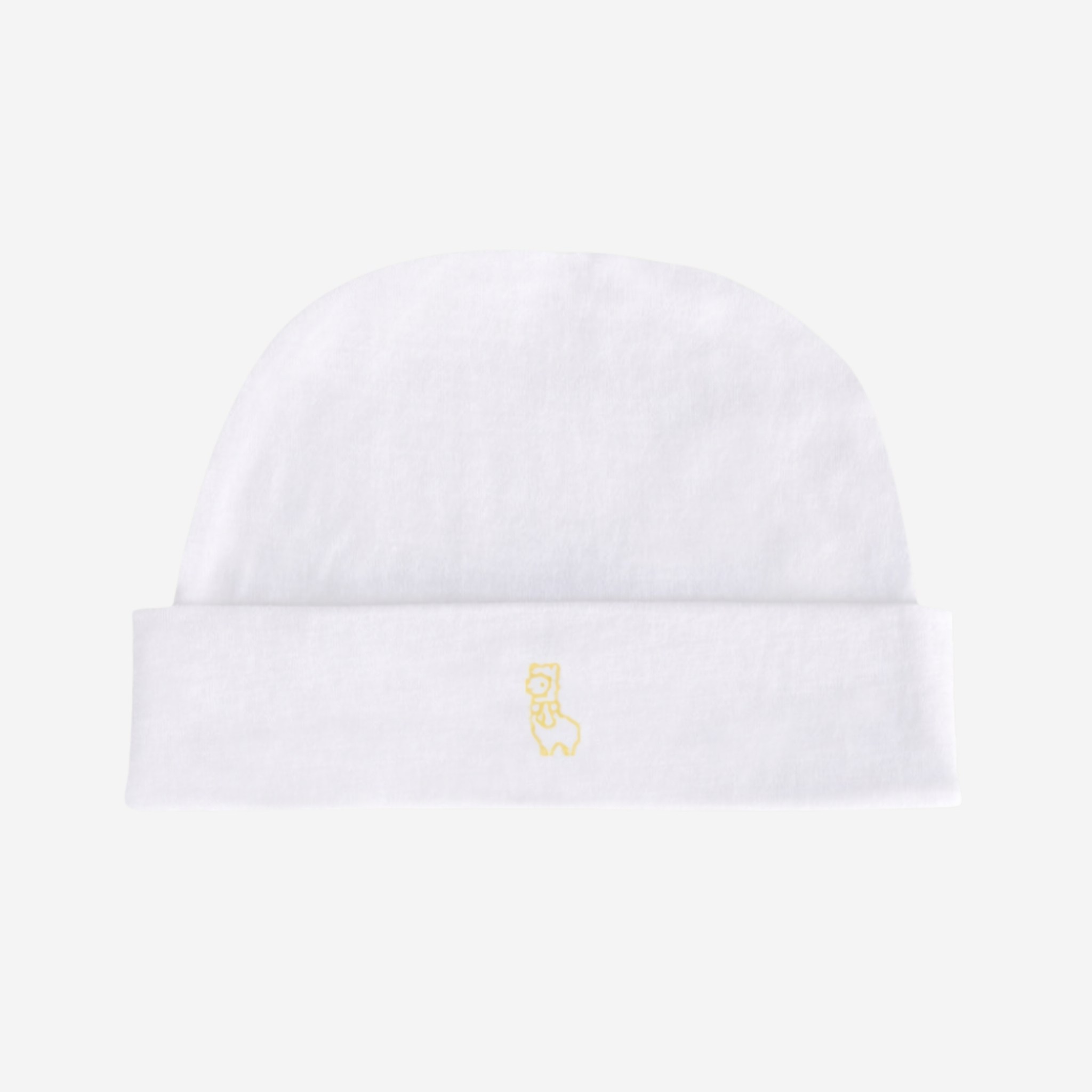 Erhältlich mit der Llamita in Grün, Blau, Rosa und Gelb, ergänzt die Babymütze die Kollektion auf harmonische Weise.