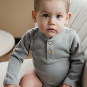 Mit seinem schlichten Design und den dezenten Knöpfen am Halsausschnitt ist dieser langärmelige Body eine zeitlose und praktische Wahl für den Alltag. Die klare Linienführung verleiht dem Modell eine elegante Note, während die durchdachten Details das An- und Ausziehen erleichtern.