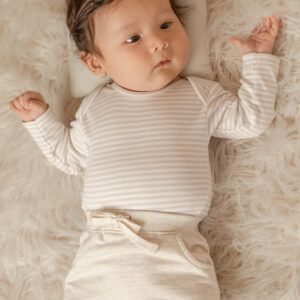Unisex-Hose für Kinder in Off-White, gefertigt aus hochwertiger Pima-Baumwolle mit weichem French-Terry-Stoff. Bequem, zeitlos und ideal für den Alltag.