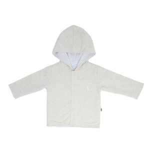 Die integrierte Kapuze sorgt für zusätzlichen Schutz, während der praktische Druckknopfverschluss das An- und Ausziehen erleichtert. Dank der neutralen Farbgebung lässt sich die Jacke vielseitig kombinieren und eignet sich ideal für den Alltag – ob zu Hause, unterwegs oder beim Spielen.