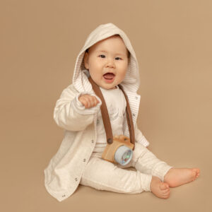 Diese unisex Jacke für Kleinkinder in Off-White kombiniert ein schlichtes Design mit hohem Tragekomfort. Gefertigt aus hochwertiger Pima-Baumwolle in Kombination mit weichem French-Terry-Stoff, bietet sie ein angenehmes Hautgefühl und ausreichend Wärme für kühlere Tage.