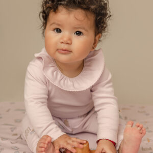 Dieser Baby-Body mit zartem Rüschenkragen vereint zeitlose Eleganz mit höchstem Tragekomfort. Das feine Design verleiht dem Body eine besondere Note und macht ihn zu einer stilvollen Wahl für Babys und Kleinkinder.