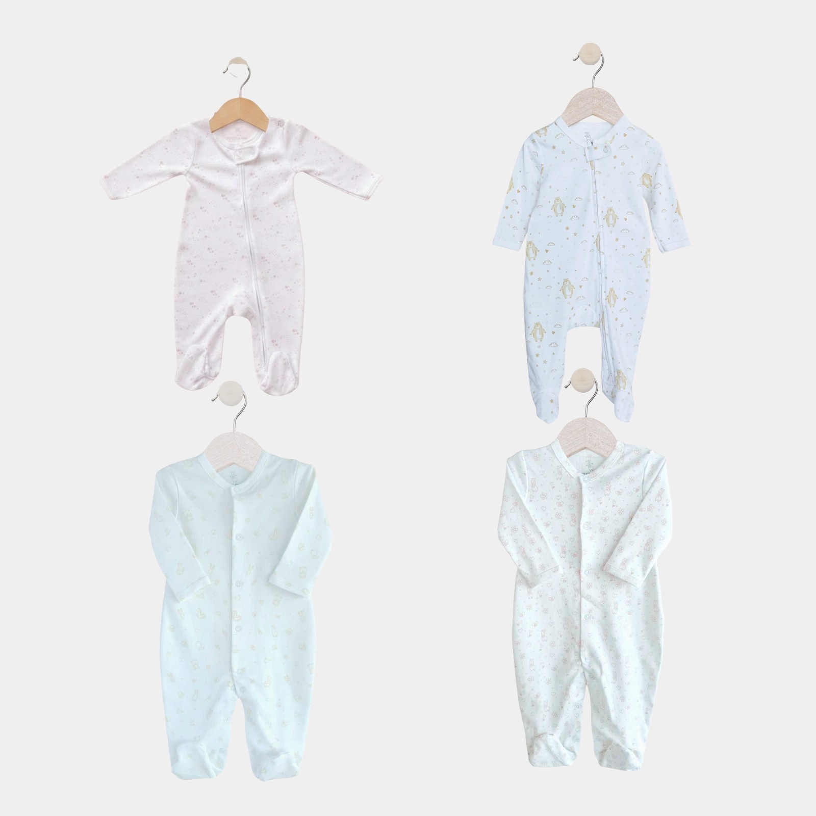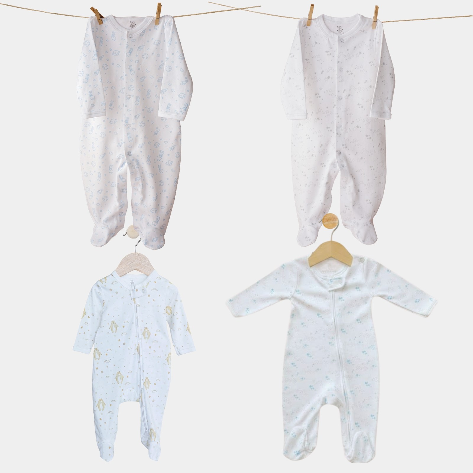 Das Set enthält 4 Strampler/Pyjamas in verschiedenen Ausführungen, um sich an unterschiedliche Situationen anzupassen:
