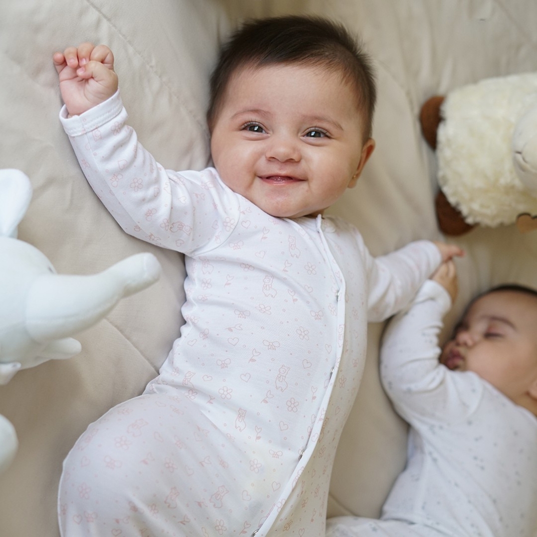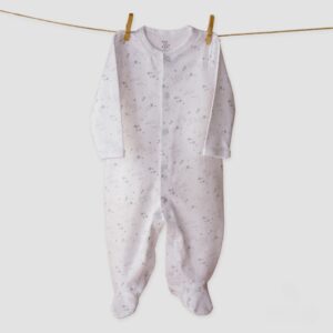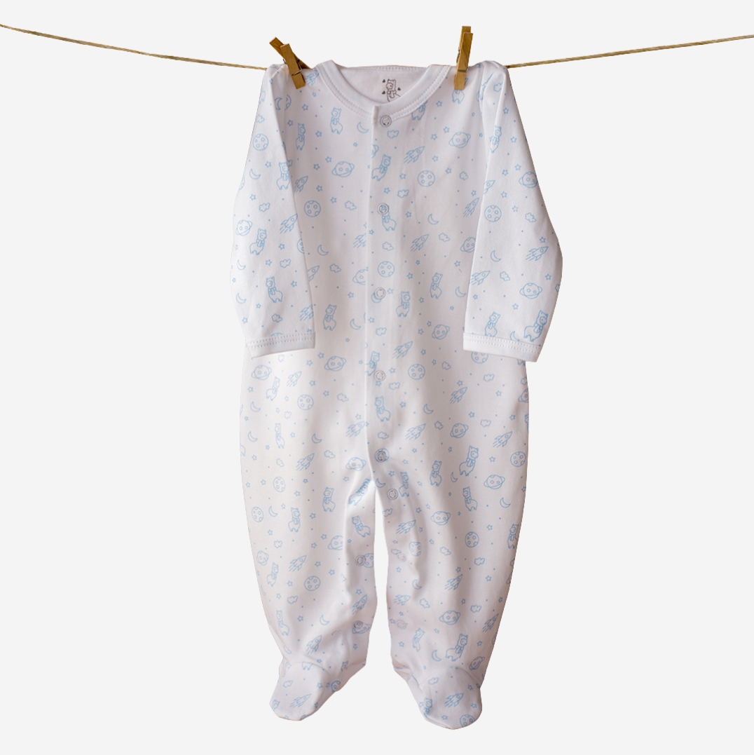 Strampler mit Füßen aus 100 % peruanischer Pima-Baumwolle, weich und angenehm auf der Babyhaut. Mit Druckknöpfen für einfaches An- und Ausziehen. Erhältlich in 4 verschiedenen Designs.