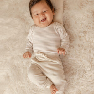 Erhältlich in drei Farbvarianten – Streifen, Latte und Lavendel – ist dieser Body ein zeitloses und funktionales Basic für die Kindergarderobe.