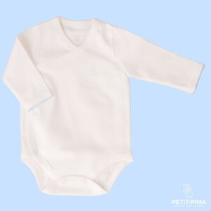 Kimono-Body für Babys aus 100 % peruanischer Pima-Baumwolle. Das überkreuzte Design erleichtert das An- und Ausziehen, ohne das Kleidungsstück über den Kopf ziehen zu müssen. Weich, bequem und sanft zur empfindlichen Babyhaut. Erhältlich in den Farben der Llamita.